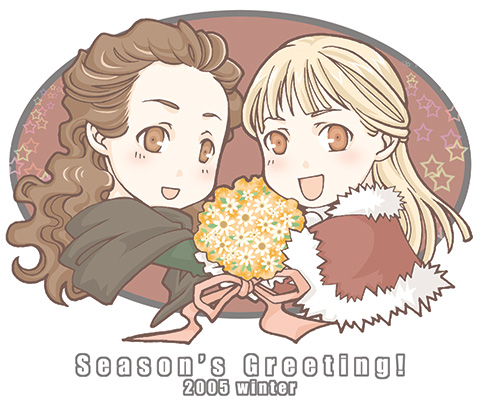 ↑new ↓old Christmas 2006このサイトで一番クリスマスが似合うのはこの人かもしれないですね…服装が。Phantom(10月だったので)色だけでも秋色にしてみようかと。下書きでは横にクリスが居…Phantom2006年の新年一発目TOP…に間に合わなくて、出したときには線画でした。仮面舞踏会は新年のパーティでしたよね?Christine & Meg友人からグリーティングカードが届いたので急遽お返事。メグの瞳は茶色でOK…?どん・ふぁん……台詞忘れちった(エェ!?)Phantomドン・ファンの衣装もえろくて好きなんですよね…って、好きの基準はエロさなのか!?Phantom & Christine & Raoul変えたつもりが、男二人ポーズ被った…;;Christine幼稚園の頃(=お姫様ばかり描いてた時期)を思い出しつつ。ドン・ニャンドン・ファンならぬドン・ニャン。え、ダメですか。Phantom仮面舞踏会の衣装&仮面が好きなのですよー。ぴたっとしてエロいですよね(え)